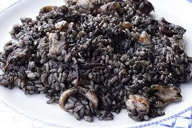 Mientras tanto añadiremos el arroz a la cazuela, removiendo para que se empape bien de aceite y tinta.