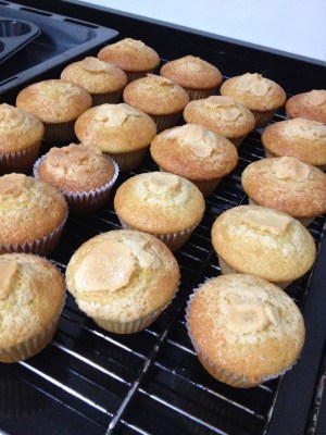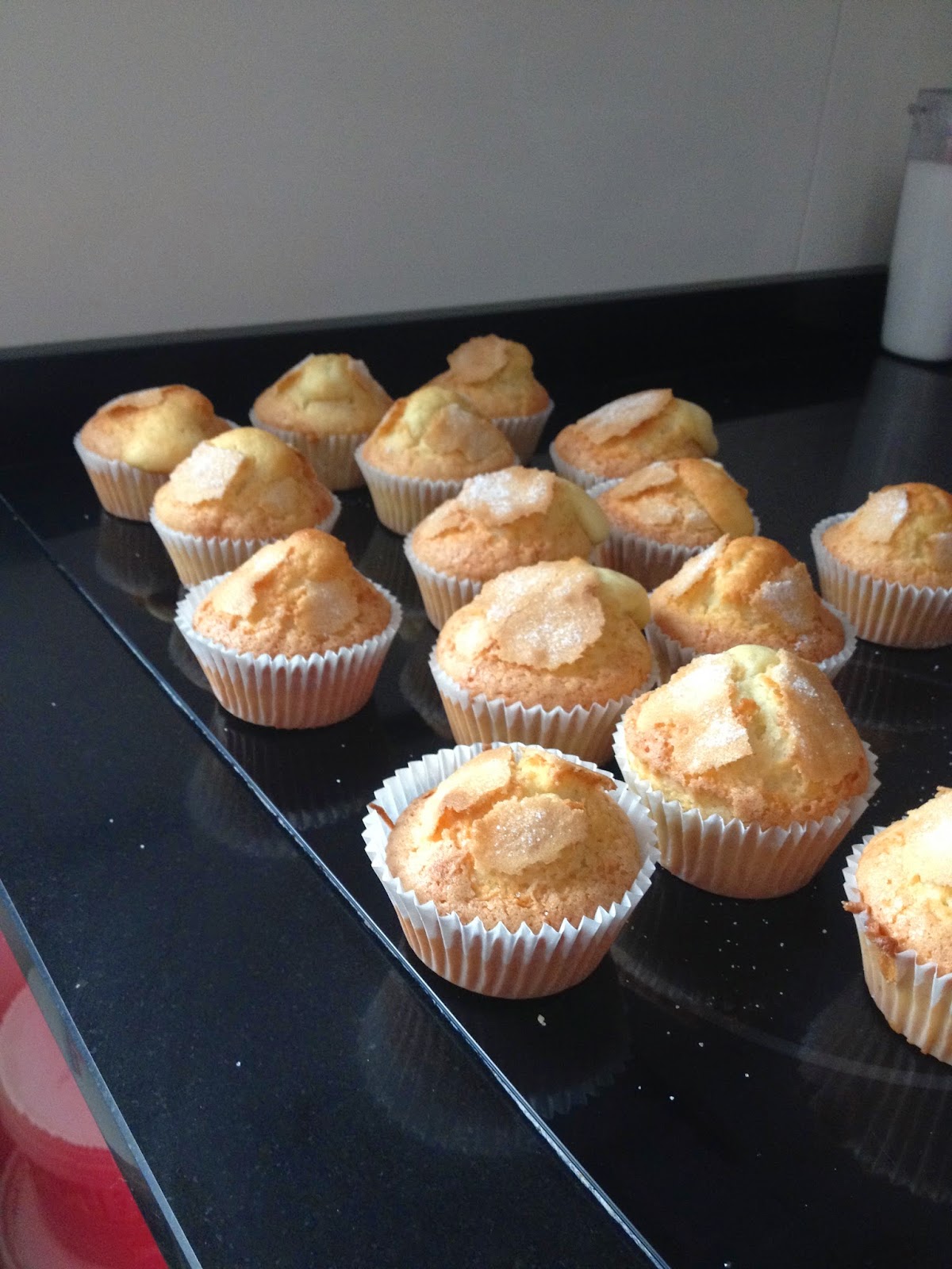Vertemos la mezcla en las capsulas para las magdalenas y las espolvoreamos con azúcar.