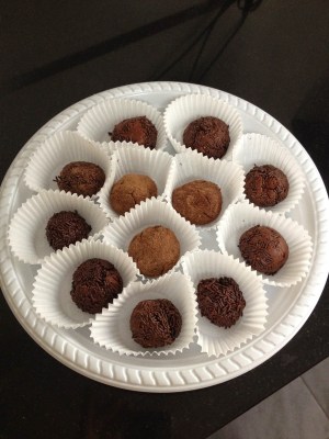 Dejamos enfriar a temperatura ambiente, una vez ya este frío y un poco más consistente, vamos dando forma a las trufas y las rebozamos en cacao en polvo o en fideos de chocolate, eso ya a gustos.