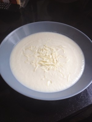 Poner en un plato hondo y acompañarla con un poco de curry o queso rallado.