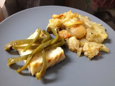 - 4 trozos de bacalao desalado.