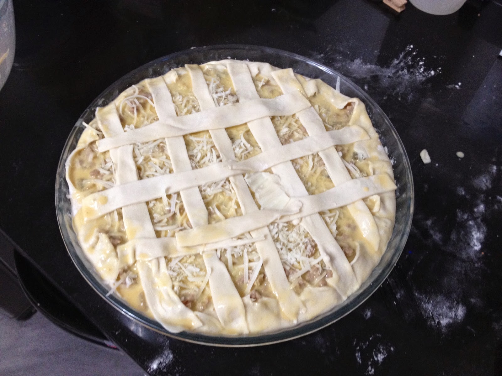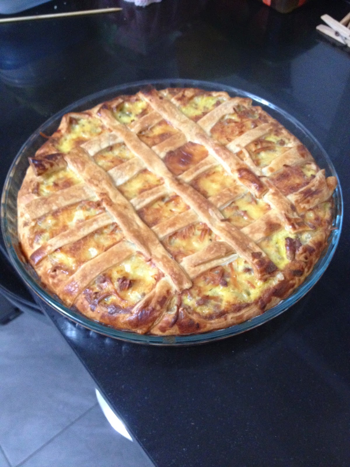 Si nos ha sobrado masa de hojaldre podemos decorar con algunas tiras por encima.