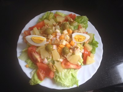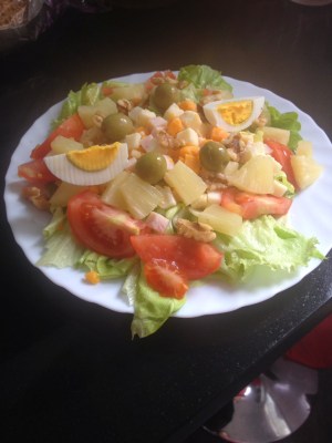 Esta ensalada me la ha preparado hoy mi marido y tengo que reconocer que estaba muy rica.