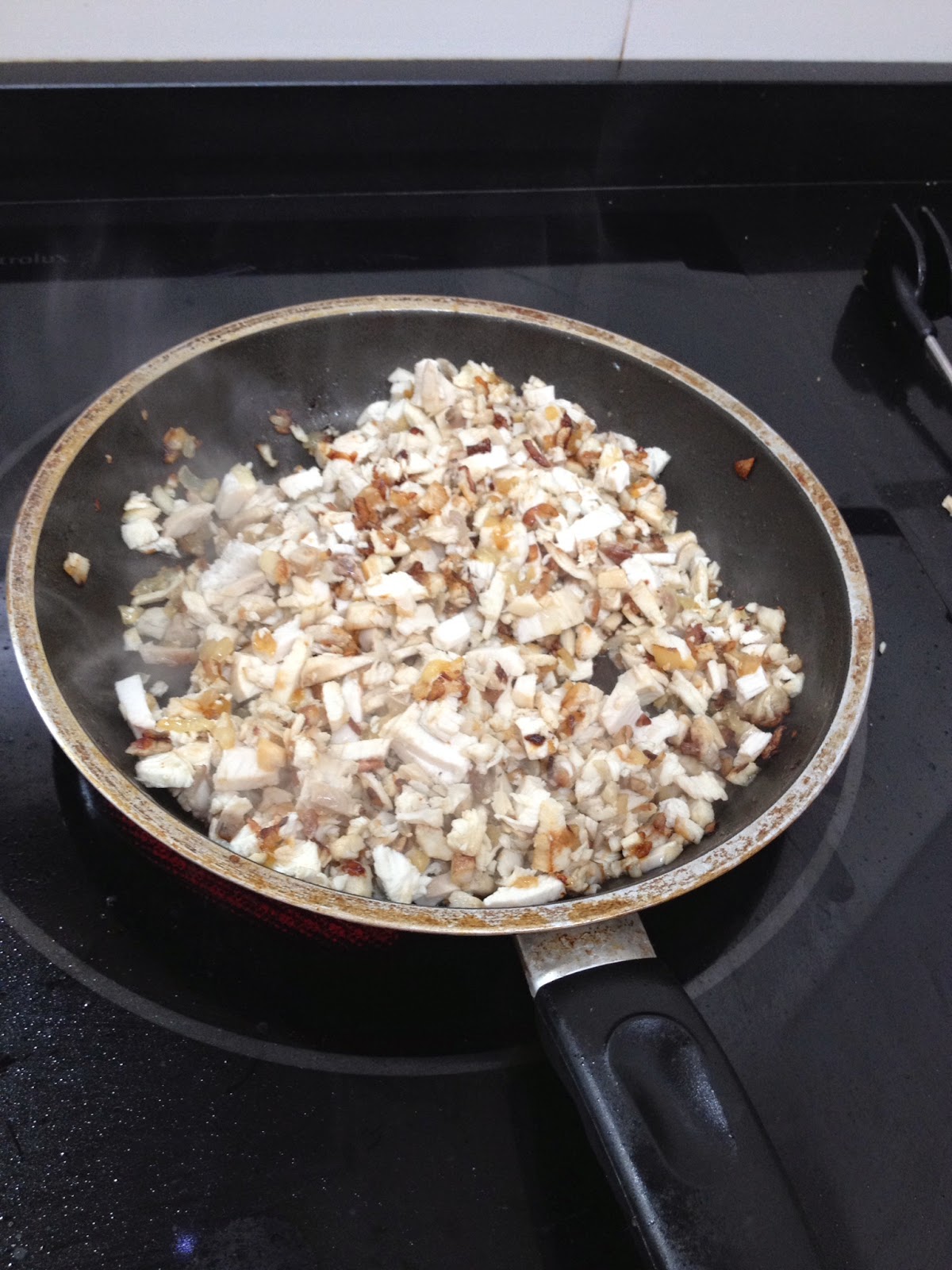 Por otro lado vamos desmigando el pollo asado y cortando lo en trozos pequeños, quitando todos los huesos.