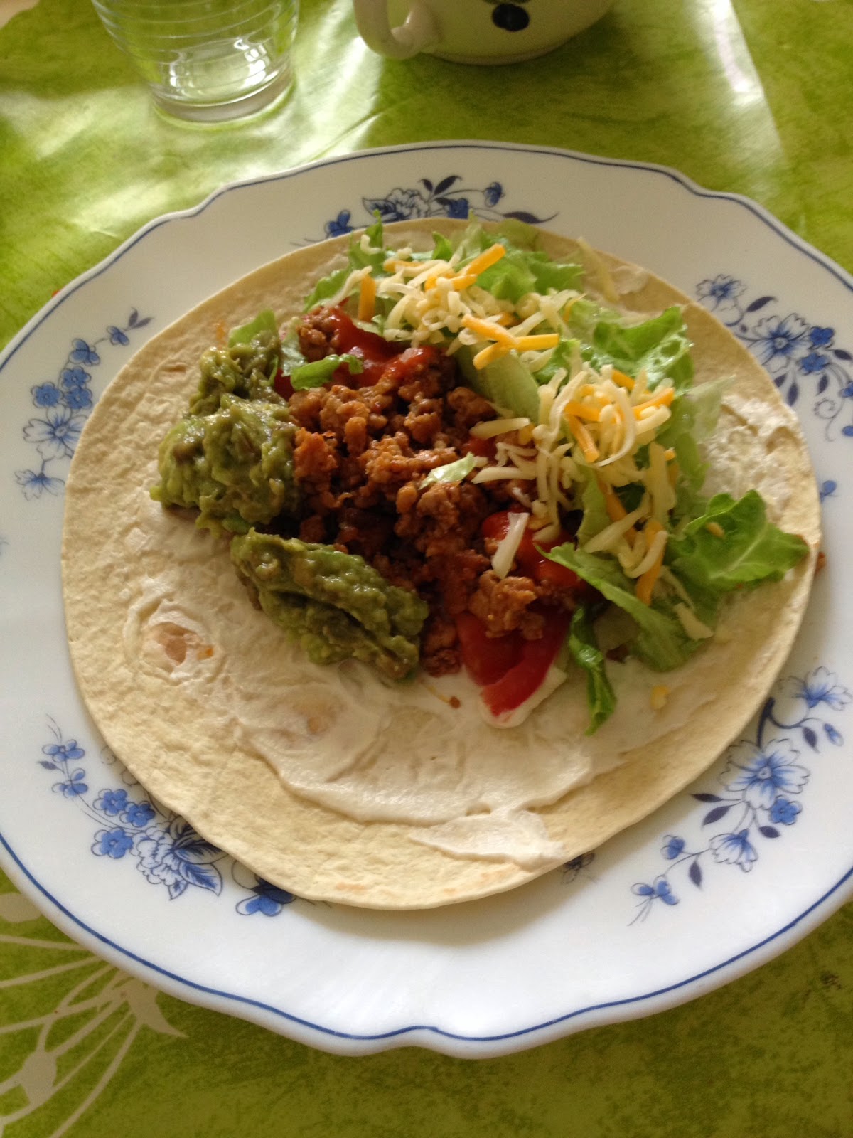 A continuación preparamos el Guacamole, abrimos el aguacate por la mitad, quitamos el hueso, con una cuchara vamos poniendo en otro bol toda la carne del aguacate y lo chafamos, añadimos el jugo de la otra mitad del limón para que no se oxide, añadimos sal, picamos media cebolla muy pequeñita y la incorporamos al aguacate, lo mezclamos todo. (También podemos añadir tomate muy picadito os gusta), lo tapamos y reservamos en la nevera.