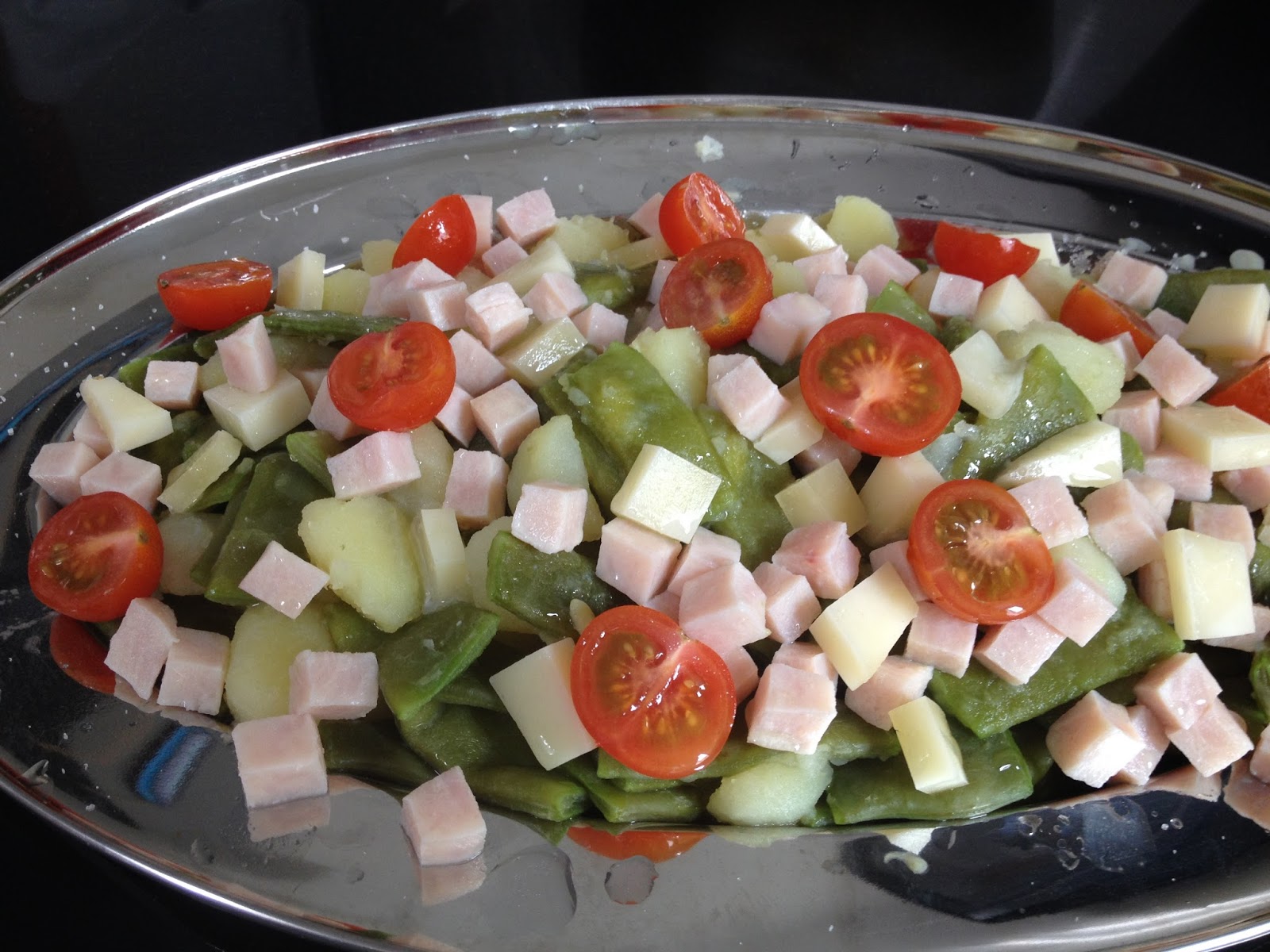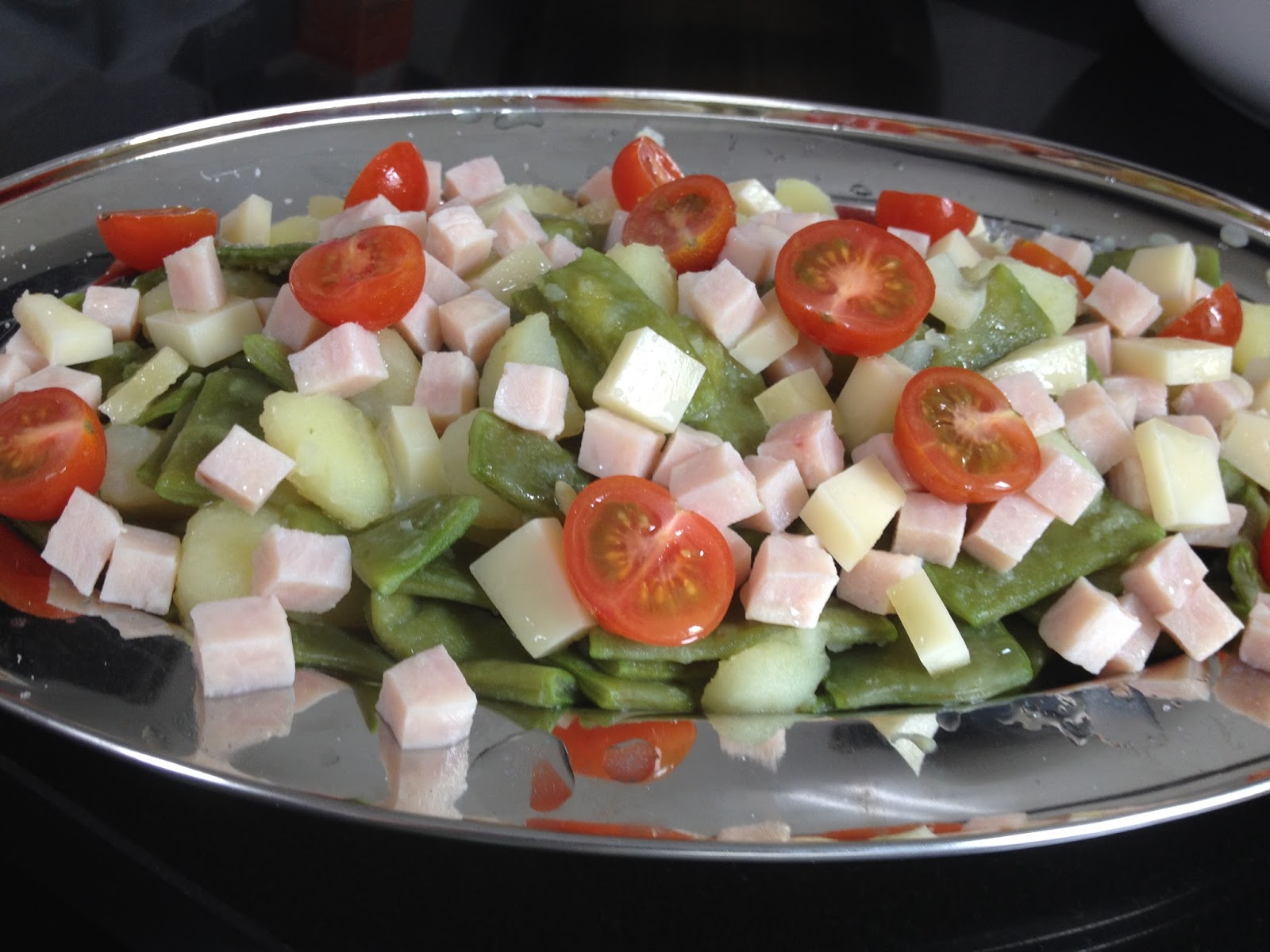 Cortamos las puntas de las judías y las cortamos en 3 trozos, las lavamos.