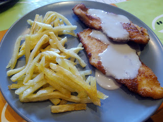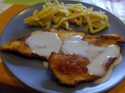 PD: Este plato originario es con escalopines de ternera, pero como podéis comprobar se puede hacer con pollo también, esta delicioso.
