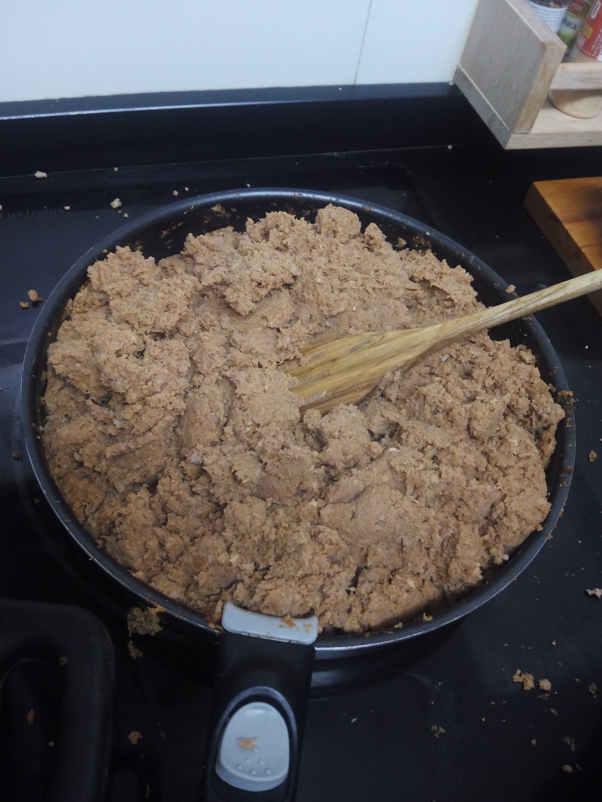 Pochamos la cebolla picada a fuego lento durante una hora aproximadamente, una vez este cocida incorporamos la salsa de tomate, cocinamos duran 10 minutos. Incorporamos la carne picada anteriormente, mezclamos con el sofrito rectificamos de sal.