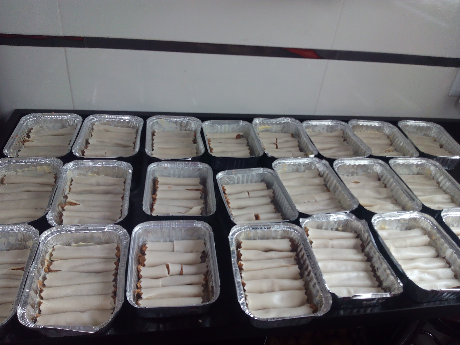 Vertemos la bechamel en las bandejas de los canelones, hasta cubrir.