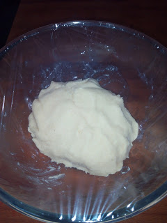 Incorporamos la harina y la levadura, mezclamos, formamos una masa un poco pegajosa, la tapamos con papel film y la dejamos reposar en la nevera durante 20 minutos.