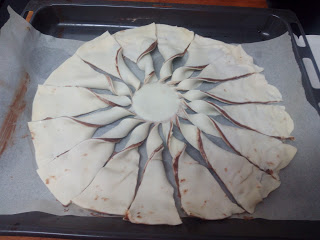 Con cada porción vamos dando dos vueltas sin llegar a romper el inicio de la circunferencia, como os presento en el vídeo.