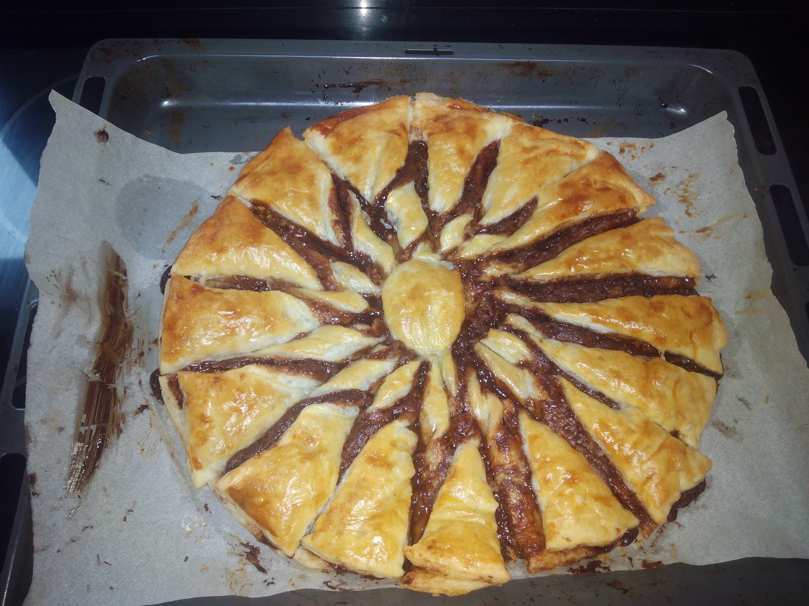 Por último pintamos toda la superficie de hojaldre con el huevo batido y lo horneamos a 200º durante 20 minutos.