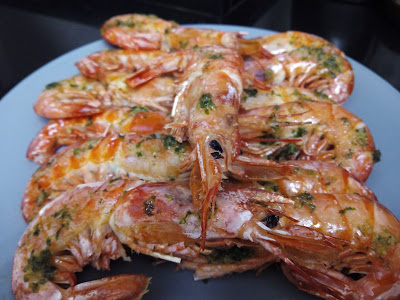 Hacemos una salsa con un buen chorro de aceite de oliva, el ajo picado y el perejil. La vertemos por encima de los langostinos.