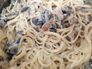 Una vez cocidos los escurrimos y los mezclamos con la salsa carbonara.