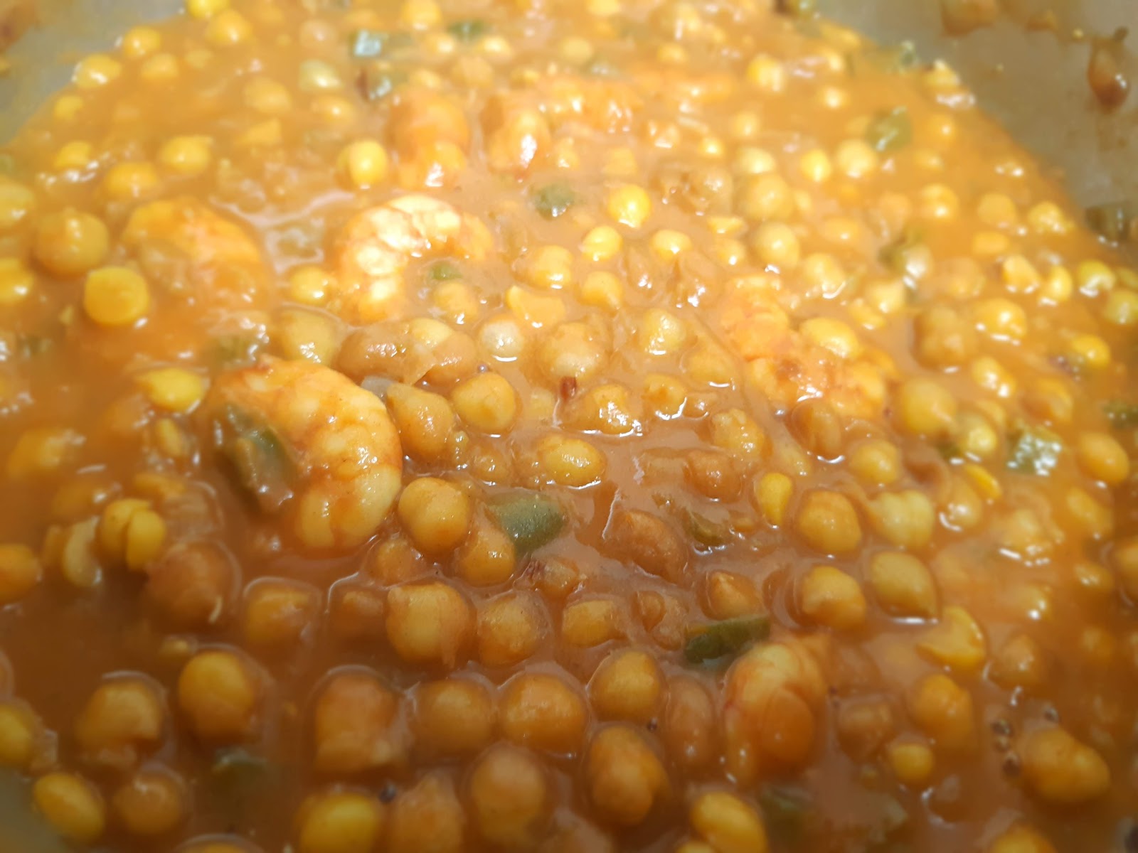 Para poder preparar esta receta, es necesario tener los garbanzos en agua de la noche anterior. (Se pueden utilizar garbanzos ya cocidos de bote)